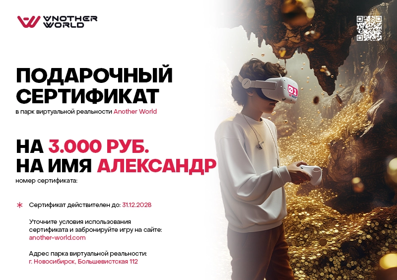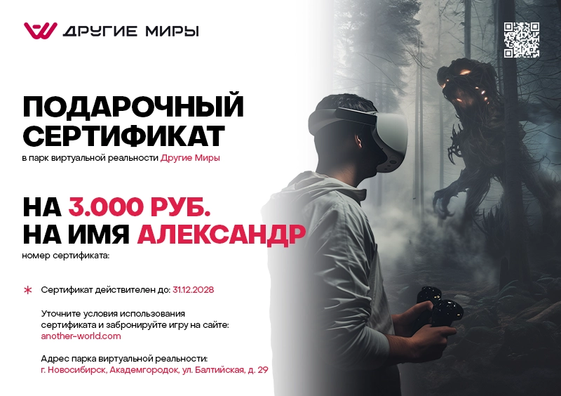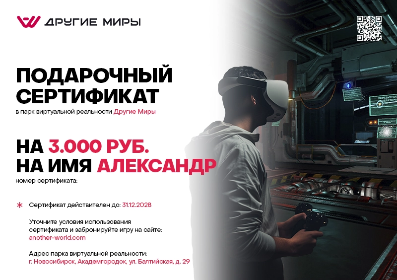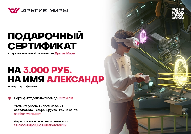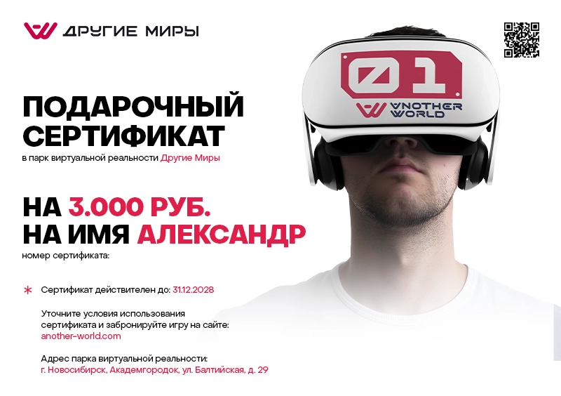 Подарочный сертификат в виртуальную реальность